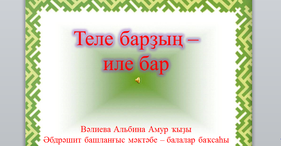 Район мәғариф бүлеге планы буйынса 10 февралдән 15 февралгә тиклем педагогтар араһында Халыҡ-ара туған тел көнөнә ҡарата презентациялар конкурсы үтте. Был конкурста барлығы 36 педагог ҡатнашты.Беҙҙең белем усағы тәрбиәсеһе Вәлиева Альбина Амур ҡыҙы башҡорт балалар баҡсаһы тәрбиәселәре араһында беренсе урын яуланы. Афарин!!!